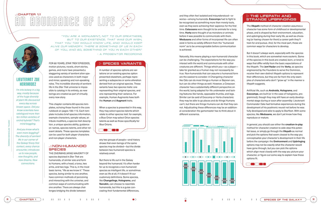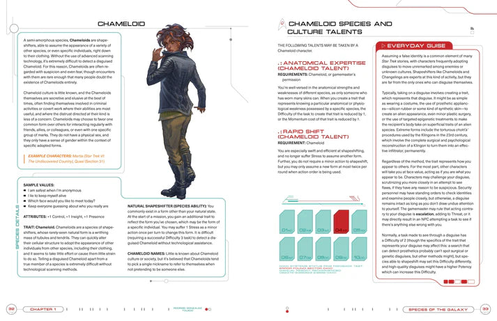 - Guidance and mechanics for creating your own original Star Trek species for use in your campaigns.
